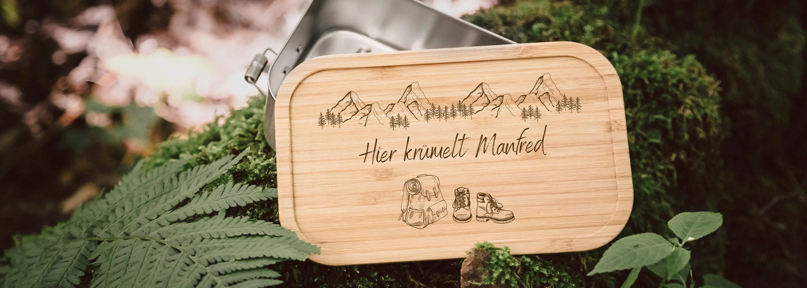 Eine personalisierte Couchbar lädt nach einem langen Tag zum Abschalten ein. Ein Brett mit Gravur begleitet Grillabende oder gemütliche Abende auf dem Balkon. Eine personalisierte Lunchbox oder Trinkflasche passt zu langen Spaziergängen, Arbeitstagen oder Ausflügen mit der Familie.